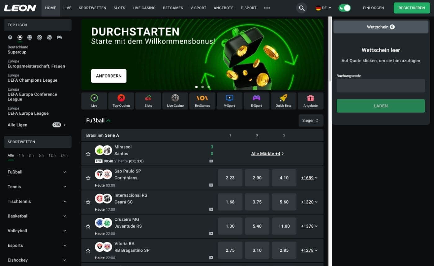 | Leon Bet | 100% bis zu 500€ + 50 Freispiele |
