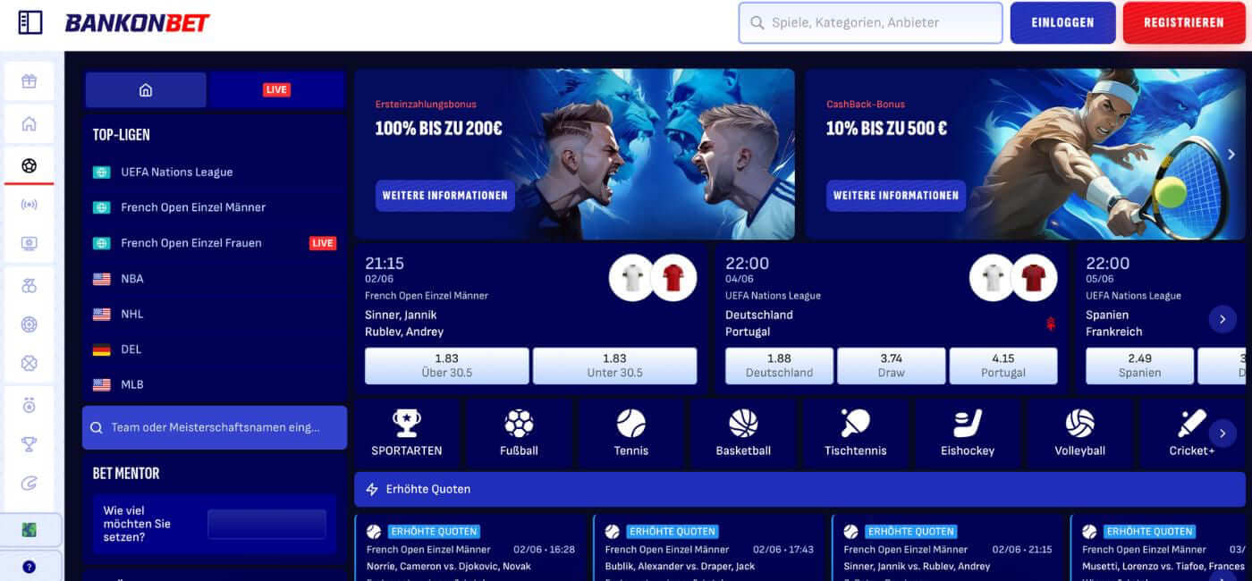 Wettneulinge, die sich auf der Plattform registrieren, können von einem Willkommensbonus von 100% bis 200€ profitieren, und als Bestandskunde winkt ein wöchentlicher Reload von 50% bis 500€ oder ein Cashback-Angebot von 10% bis 500€. Ergänzend wird noch ein Kombiwettenboost bis 100% offeriert.